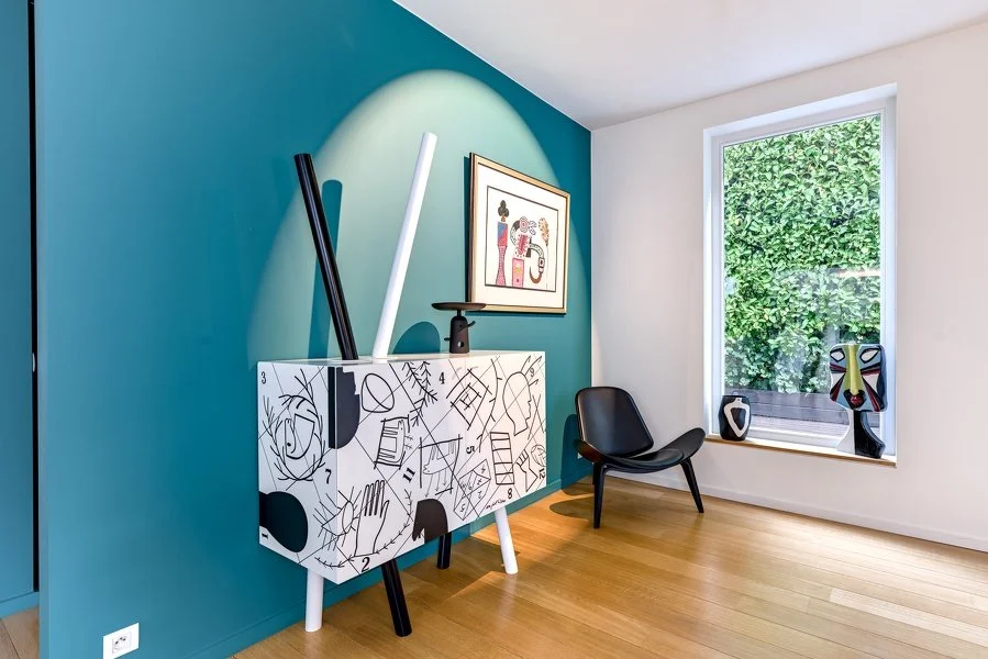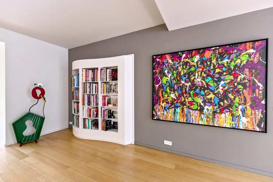 Ce projet a été pensé pour sublimer chaque œuvre à travers un jeu précis de couleurs et de volumes. L’agencement des espaces crée une mise en scène fluide et équilibrée, au service de la collection et de son expression.